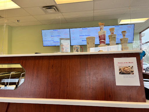 Decent, but not great ice cream. Good level of sweetness. Not creamy enough. The chocolate flavors have very little chocolate flavor. The chocolate chips are small and bland tasting. The Honey Pecan and fruit flavors are slightly better. The interior is clean and bright. There is comfortable seating and a clean bathroom. Decent and inexpensive, but unnecessary when East Coast Custard, Mitchells, and Handels all have better ice cream.