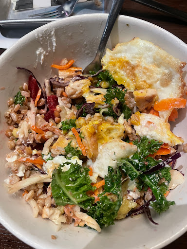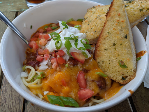 We eat here once a month. Great tasting American menu. I love the BBQ chopped chicken salad. Also, the five-way chili is great.