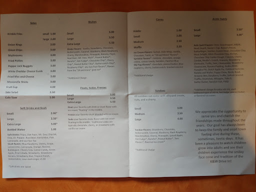 Favorite local ice cream and burger stop. 50+ years in the community, owned and operated by members of the community. The "K" is an American staple, and the next time you get an ice cream cone, ask for a face! Its one of the little things that make this place so special.