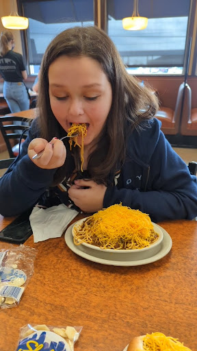 Its cheap and good Cincinnati style chili and dogs. Dont use drive-thru, eat in.