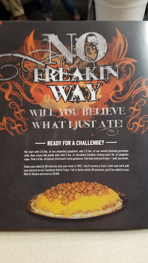 Another "Cincinnati Chili" but it is tasty and has a different flavor than Skyline, Camp Washington, or Gold Star (not sweet like Skyline, etc.)