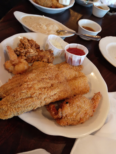 We ate here New Years eve for the first time. We had reservations but that turned out to be useless as we were seated about 35 minutes later. Note to restaurant: Keep one table open for reservations at all times. The food was good but not worth the exorbitant prices they charge. I had the catfish and shrimp which was good but not worth $29. The catfish seemed a bit mushy to me as well. We shared a salad that was very good but was not included with the meal. My wife had a salmon dish with sauce and bits of crab meat with a side of tasty grits. It was very good. The baked potato was not included and we paid $3 extra for this. I decided to get the banana pudding because it looked good when it was served to others with a cookie perched on the edge of the glass and a strawberry on top. It was good but not worth $7.00. It was kind of mushy and the cookie was wafer thin and tasteless. It was no better than a Frischs desert. I heard and advertisement for Pappadeaux Seafood on WLW700 today. In the ad they mentioned that they buy their seafood directly from fishermen thereby cutting out the middleman. And they cut out the middle man why? Evidently its to rake in a hefty profit because the customer is left to foot a bill for a high price meal that could be gotten for much less at Red Lobster. We will probably not go back and the pricing is going to be the main reason for this. Its just obscene and not any better than Red Lobster. Red Lobster has call ahead seating which works better than the reservations do here.