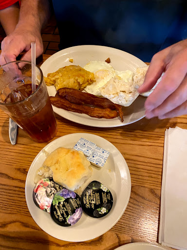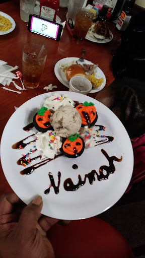 Golden Corral is definitely on the way down. Food used to be hot and fresh, Today we were there about 5:45pm. Veggies were either under cooked, carrots were like rocks or over cooked, corn actually just dissolved when eaten. Everything was gross. Lettuce was extremely watery, cobb salad was soured, butter had so much food slopped into it, it tasted like french dressing. Steaks were all well done no matter how they were ordered. And, lets see there was chicken, chicken and more chicken,,,,4 kinds of wings, roasted chicken, fried chicken, bourbon chicken.......bad bourbon chicken...what happened to baked white fish (now they serve bone-in catfish), liver & onions, shrimp (now a disgusting crab cake thing)? Soft serve ice cream tasted like water, cakes seem to be frozen boxed cakes. Used to enjoy gathering here but now, will never return.