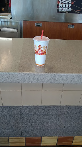 The inside was disgusting. The floor was sticky. The service was very slow considering that they had 5 people working back there and it was not crowded at all. After the 5 other customers left we were the only ones in there, and the employees stood around doing nothing. The self serve dink fountains had some nasty white stuff sprayed all over it, dont know if was someones attempt to clean or what, but it did not help. Do not eat inside this place. The shift managers just want to hide inside their offices and not do there job, by ensuring the employees are doing theres get new management!