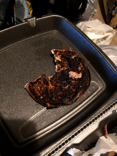 Pulled pork sandwich was cold. Ribs were tough. Cornbread was a bit under cooked. They got 1 star because it is required to post comments.