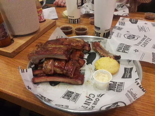 Food was great! Tender, meaty ribs, tender, tasty pork, yummy sides. Choice of barbecue sauces, also very tasty. Just a bit pricey unless you have a coupon.