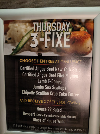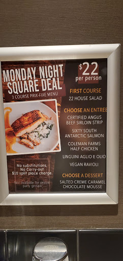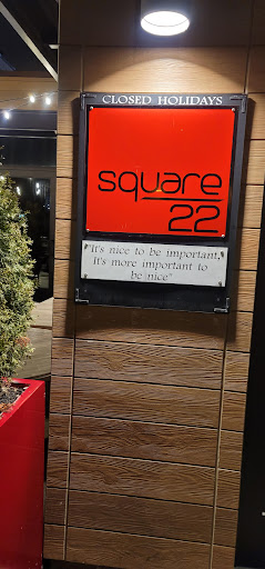 Great atmosphere, good food, a bit overpriced. We went to the Strongsville, OH Square 22 on a weekday evening for apps and some wine. The place is really nice inside - it has sort of an industrial feel to it but still fairly upscale. Service was good and the place was clean (I guess it should be if the restaurant is brand new). Drink: The craft beer selection was limited. There were 10 or so drafts with a few of them being craft beers (cant escape the Bud Light). We looked over the short wine list and settled on two glasses of middle of the road cabs. Ordering a full bottle, which is generally cheaper than by the glass, you would note that the wine bottles are up charged at about 250%. This may be normal if youre downtown at Lola, but here?... it was a little disappointing. Food: Entrees are pricey at around $20-$30 with a la carte sides. No complimentary bread was offered. We each had a wedge salad and shared a flat bread. The salads were great, good sized and fresh. The flatbread was meh... it tasted ok, but it was like a cracker with dry crumbled feta on top. We ate it all, and it was still enjoyable, but we were both underwhelmed and looking for something much better. By comparison, 750ml in Brecksville has amazing flatbreads... So overall, it was a decent time and we were really just checking the place out since we live so close and could use another date night hang out. Im providing 4 stars because nothing we had was bad, just not as good as we were expecting. Three glasses of wine, two wedge salads and a small flatbread was $50, add $10 for the tip and I just dont see the value. I want this place to thrive, but the wine list needs to be expanded, more offerings of craft beer, and the menu should be revamped. We will go again and have recommended the place to friends to try out.