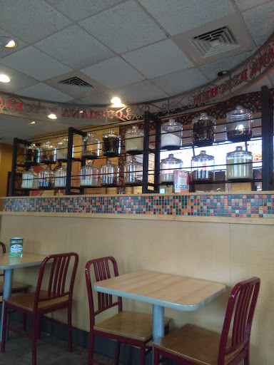 Nice enough people. The food is pretty much chain standard. The bathrooms are well made but small and not the cleanest. Ok during non-peak times, too slow for lunch rush.