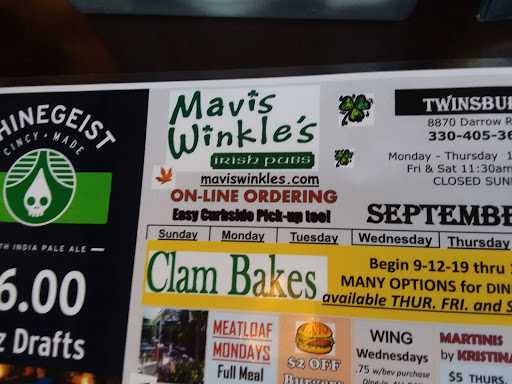 Guinness on tap. Boxty is great. Cant go wrong with a trip to Mavis Winkles Irish Pub. Large and small groups are equally welcome. Dont believe the low reviews - once you try Macis Winkles youll be back many times.