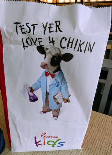 I can belive i just witnessed what i did. I was peacefully eating my dinner with my girl friend and this little boy started crying (was kind of annoying) then Richard (i belive a manager) came to the little boy and asked him of he would like a sticker. The boy stopped crying and we enjoyed the rest of our meal. I thought these days were over, however Richard brought back a little of olden days. Thank you Chick Fil A for the unremarkable experience. P.S. Food was outstanding. And thank you for my rootbeer refill for our way back to MI