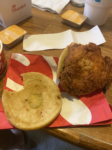 The food is amazing as Chick Fil A always is, and will never cease to satisfy. However the service here is a bit mixed. Ive had less than pleasant cashiers, and sometimes some really slow service. However the last time I was here, I was inside eating as they were closing, and I went up to the line to get a frosted lemonade. Unfortunately, they had just closed up all the registers for the night. It was 10:05, so I understood and went back to my seat. However while I was seated, one of the cashiers came up to me and offered me the last frosted lemonade of the night, free of charge! That was too awesome. Thank you so much.