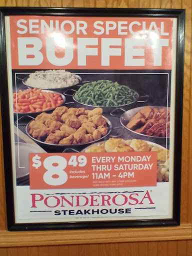 This was one of the better Ponderosa locations - having dined at Grove City, Hermitage, Butler, and New Castle. The staff was VERY friendly and social and the buffet was clean, neat, well-stocked and kept fresh - despite we were one of the last parties to come in for dinner that evening. Great selection of buffet food and desserts. In the one corner is an "Atrium-Like" area where you can sit and it almost feel like you are eating outside as two walls are enclosed in glass. The chef preparing our steaks did forget to season our steaks (as requested) - BUT they were honest enough to admit fault and offered to replace them. You will most likely need to season the food to taste as it appeared they do not add salt/pepper (seasonings) to any dishes.
