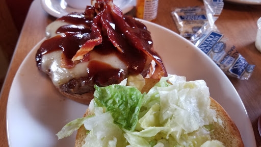 Went there for breakfast last saturday, we had stayed for the weekend at a campground nearby. The food was mediocre at best. Got a ham and cheese omelet, home fries, and biscuit... it was the sorriest ham and cheese omelet i ever seen lol, very disappointing. It was okay taste-wise, nothing great but not horrible. I definitely think the cook needs to be taught how to make an omelet. My boyfriend got bacon, eggs, homefries, and a biscuit. The bacon was burnt on the edges and very well done thru the rest. Not good at all. You have a choice of homefries or hashbrowns.. both deep fried :( .. And the hashbrown is one of the types from like Mcdonalds, the patty type. Bleh. The biscuits seemed like mcdonalds also. I just thought everything would be fresh and homemade i guess, seeing the type of town the restaurant is in. Was very disappointed all around, except the waitress was very nice. Also took a fairly longer than usual amount of time to get our food. Then had to flag down the waitress to get her to bring our receipt so we could leave. Not sure if i will be stopping there on our next trip, most likely not tho.