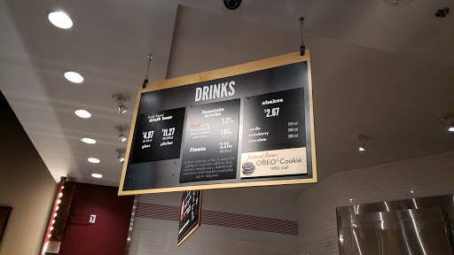 Another take on rapid pizza is good but not great. The frustrated is very thin (they do have an option for double crust) and they skimp on the sauce, but the ingredients and flavors are good. They have a lot of staff bustling and the food was prepared in a timely manner. The beverage cups are small (one side only) so there is a logjam at the one drink dispenser. The decor is bright and clean.