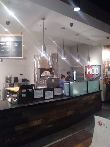 The staff at MOD pizza is always so personable and helpful! Theres a girl who has the same name as I do & she is always so nice! The pizza is delicious and they are willing to add more toppings if you ask for them, which is great when I want excessive honey lime dressing on my salads. Great music, awesome food, wonderful prices (even for broke college students)