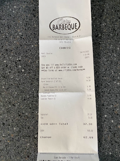 I love City BBQ and take all of my out of town visitors there. They have all loved the food and have asked to go there on their next visit to the area. My kids love the food there as well. My favorite (by far) is the brisket, followed by the ribs. Their salad is always fresh and the blue cheese dressing actually has blue cheese.