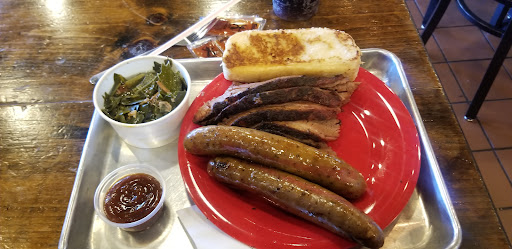 Excellent BBQ! The sausage is from another planet! The pulled pork was very, very good. When I requested burnt ends they GAVE me some beef bark. It was easily the best thing I ate. My wife and I have a strict policy of not eating at national chains when we travel, we were very happy that policy led us here. The young man who greeted us took a lot of time explaining things and have us a couple of samples. TOP NOTCH!! Minor complaint, the restaurant is very smokey from the food smoker, not cigarettes. It is a little overwhelming. But it would not stop me from returning.