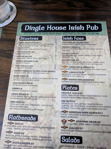 My wife and I have visited the Dingle House twice now. We enjoyed the pretzel bites and beer cheese. Ive had the Blarney Burger and the Bourbon Burger and enjoyed both. My wife had the Pesto Chicken Sandwich both times and really enjoyed the pretzel bun and the chicken. They have a nice selection of Irish Whiskey and beers. They also offer growler refills and purchases. The pub is decorated with lots of stone work which adds to the Irish Pub feel. Will definitely be going back.
