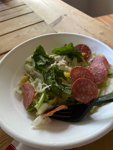 New location to me. Order in & take out. Both great. 90% of time order Donatos. We love thin crust, pep & veggie; subs & salads. Place looks clean & service helpful.