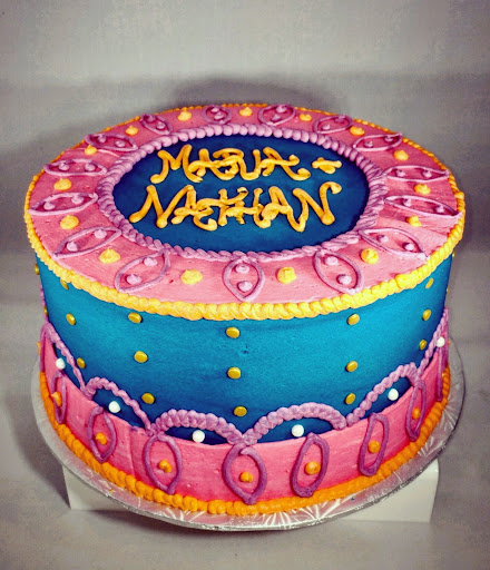 Most delicious cake I have ever tasted. My 25 guests at my daughers birthday party felt the exact same way! Beautifully decorated and tasted amazing! Almond flavored cake, Whipped butter cream frosting, and fresh raspberry filling. YYYYYYUUUUUMMMMMM!