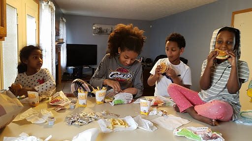 Horrible service. Horrible dining area. Nasty looking drink stand. Dirty chairs, tables, and sticky lids for the drinks. Rinky-dink burgers and dried out fries. Manager looking like he's 12 and not paying attention to the drive thru orders. Ppl touching there pits and nuts making the food. Dirty up and down, nasty dining area, nasty ppl, just gross.