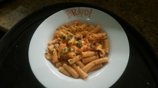 My server was wonderful! All of my food came out at same time which was a little frustrating. But I asked for extra chunky oil for my bread and she brought it right out. Boxed up my food for me. A lovely experience at Bravo, great great Food!