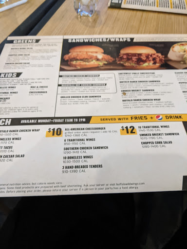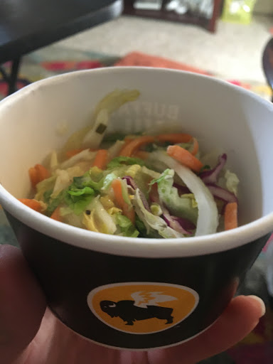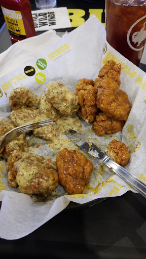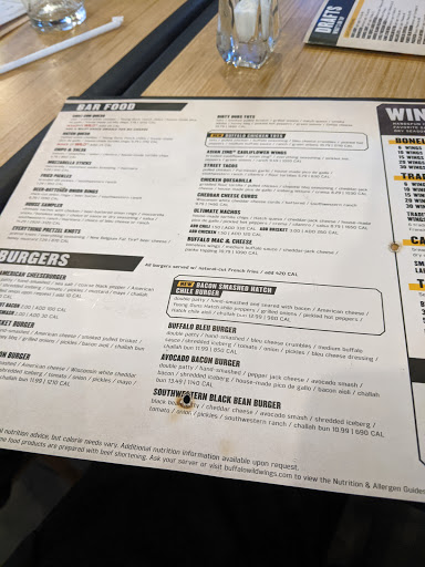 Avoid at all costs, go to a different location. Pricey food for mcdonalds icecream machine quality. Came in at 9pm on a Sunday night. The floor was littered with trash and in someplaces silverwear. It was under nearly every table, it looked like every manager and supervisor called in. Ordered an appetizer, which showed up after 30 minutes, overcooked and gross. At 10pm the food came My date ordered the wings, which my date described as taunt and old. I ordered the buffarito, (which it turns out is actually a taco, apparently) and they sent out the wrong side, not the one described on the menu. I couldnt get ahold of the waitress for awhile, so I just dealt with it After eating we waited 15 minutes for a waitress to bring us the ticket We waited another 10 for her to swipe my card, and bring us some hotsauce to buy. (Added the correct sauce to the ticket, but brought the wrong sauce) Got home, realized they actually gave me expired hotsauce. There were two other couples there in this dining area. They werent overly busy, waitresses were mostly absent the entire hour and a half we spent there, and the kitchen was serving us slop. Its like the waitresses were cooking, serving, and managing alone. Dont come here. Its complete garbage.
