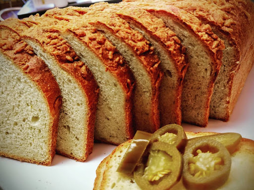 Got a loaf of cheddar jalapeño bread and toasted 2 slices for an awesome egg sandwich! Yummy!