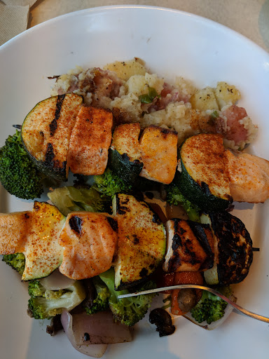 Meats are good, but skip the rice pilaf! Try the Hummus Trio appetizer! It was a tad salty, but the pita helped. You definitely need more pita bread. The steak kabob was grilled very well, tender and juicy! The roasted vegetables were grilled well too. However the rice pilaf was disappointing. For the price, I was expecting something more authentic, like basmati rice; the rice pilaf side was more Spanish rice, or some would even say Mexican rice. Keep in mind, this is a Mediterranean restaurant. I could overlook this issue, but the fact that the rice was very chewy and slightly undercooked didnt help. Thats always an Achilles heel for Spanish rice.