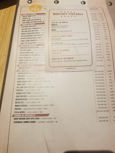 Got seated at 6pm. Too our waiter 10 min before he came to our table. We ordered drinks from the bar and waiter came back and said it would be a minute on mine since they had to change out the keg. He came back about 5 minutes to tell us that they were out of it and that the manager said they werent going to take the time out to change but they have 3 other drinks I might like. Waiter then comes back and says they are out and they only have 1 drink thats close to what I had ordered. The story kept changing. Not sure if it was then manager or the bartender that told the waiter. Weve ALWAYS had great service here at this location until tonight. This was the worst. We drive 20 min because we love this location yet we have one closer to us. I will say the food was great.