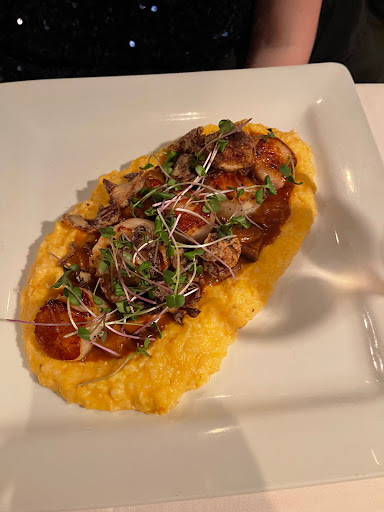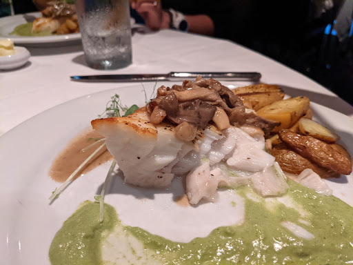 Fantastic restaurant!! We had the crab cakes and the clam cowder to start. The crab cakes are perfectly crisp and delicious, while the chowder was incredible and super creamy! Then we had the salmon and the hazelnut crusted fish. The salmon was perfectly cooked! The potatoes and asparagus were superb as well! My wife loved the peach salsa and the hazelnut crusted fish too! Then to top it off the gave us a complementary coffee cake that was wonderful! The sevice was excelent, very polite staff that constantly checked on how we were doing. Definitely recommend!!!