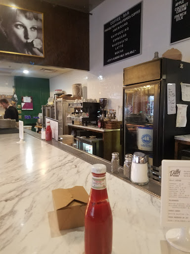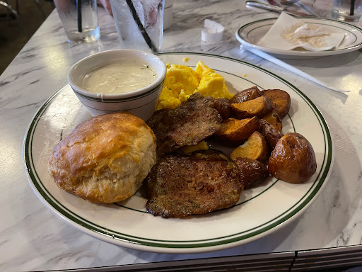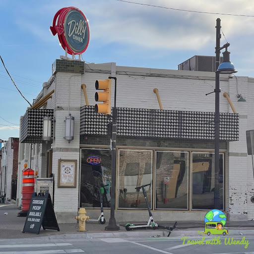 DILLYS IS A HIP LITTLE JOINT WITH A SORTA 80S THROWBACK FEEL AS FAR AS THE FURNITURE AND DISHES GO AND A YOUNGER CROWD FEEL AS FAR AS THE STAFF GO WITH THE TATTOOS AND COLORED HAIR. THEY HAVE A FULL SERVICE BAR AND BAKERY IN THE RESTAURANT. THE FOOD AND STAFF WERE GREAT, BUT THERE ARE TWO THINGS IN PARTICULAR THAT STAND OUT TO MYSELF. 2ND WAS BEING SERVED WHAT I COULD ONLY IMAGINE TO BE THEE MOST PERFECT OVER MEDIUM EGG...EVER!! BELIEVE IT OR NOT THE #1 THING ABOUT THIS PLACE, I SUGGEST AT THE VERY LEAST GOING DOWN TO DILLY DINER FOR THEIR BISCUITS. I DONT KNOW HOW THEY ARE MAKING THEM AND WITH WHAT INGREDIENTS....BUT HOLY COW!! SO WORTH $2 A PIECE IF YOU BUY THEM SEPARATELY. IT SEEMS TO STAY VERY, VERY BUSY.
