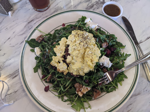 Food is okay for lunch - their brunch is a bit better. Id recommend Chimera a few blocks away for better quality at about the same price for sandwiches. Dilly Deli also plays their music way too loud. This was one of the main reasons my family stopped going for brunch. Even though the food was good, it was way too loud for my grandmother to hear and kind of rough to have a conversation even if your hearing is fine. If youre a penny-pincher, make sure your sandwich isnt cheaper to make on the build-a-sandwich part of the menu. For some reason you can build some of their "named" sandwiches for less than they charge if you order it by name. I might have rated this 3 stars but my most recent experience was not great. The waiter rounded down my change by about 60 cents. I understand that it takes time to count out the coins and the money was probably going to go to the tip anyway, but auto-rounding the bill up seems very rude. If this is an accepted policy of the restaurant then they should just make everything a round dollar including tax. If it isnt their policy, I dont know why they would let their waitstaff think it was an okay thing to do.