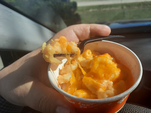 Fried chicken with some spice. Good mashed potatoes and biscuits. This one in particular can be a bit slow, though.