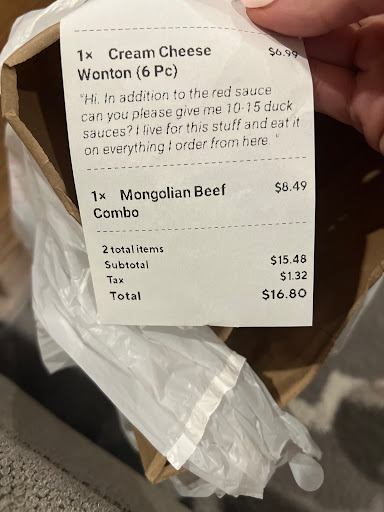 Usual, my fiancé will go inside and grab our food when we order in. We never have them deliver because they take too long and we live a mile away... Today, we were sitting in a shop a couple doors down and we ordered our food in. A friend I feel mine and I walked down to get our food. When we walked in, the lady working the register was super rude and told us "can you just wait a minute?" She said this to us the second we walked through the door. So I quietly walked to the window and waited with my friend. Then she asked what we ordered and gave me attitude when I used a credit card. We then stood there for about 10-15 minutes waiting for my food that should have already been done. The lady stood there and proceeded to argue with her boss about receipts. Keep in mind she was arguing and being rude to her BOSS! She proceeded to be rude to every person that walked in the door after that. If I could give them no stars, I would.