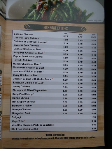 The Rice Bowl Cafe left us a nice menu on our apartment door that advertised they deliver. A few day later my girlfriend and I decided to have a lazy night in. We ordered two 4-way combos, one with pepper steak and onion/kung pao chicken w/chicken lo mein and the other with orange chicken/beef with mixed veggies w/fried rice. Problem numero uno; we were quoted an hour to an hour fifteen, we called it in at 8:25pm and recieved our food at 10:25pm on the dot. We would have had no problems if that was the quoted time or the food was worth the wait. This leads to problem number two, the food; the kung pao chicken had only one piece of chicken in it and was accompanied by a very good sized handful of peanuts (if you order this request kung pao peanuts!), I love lo mein noodles but the taste can only be described as eating propane. The one good thing on my plate was the pepper steak and onion, I just wish that it had more. Next my girls dish, her orange chicken was a pile of goo, my best guess is that it was actually cooked a couple days ago. On the other hand her beef and veggies were good and the rice was ok but the best part of all is that we are going to have puppy treats for the next few days! I also cant forget to mention the delivery lady was very nice and apologized for the wait. Just for refrence our total came to 19$ and some odd change w/ two 4-way combos and a 2 liter of sierra mist.