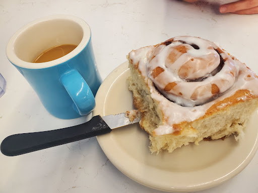 Historically famous cinnamon rolls. The coffee is rich and satisfying. Watch out for the pancakes........They are YUGE, like the C rolls. We have never been disappointed. Neighborhood vibe is strong here.