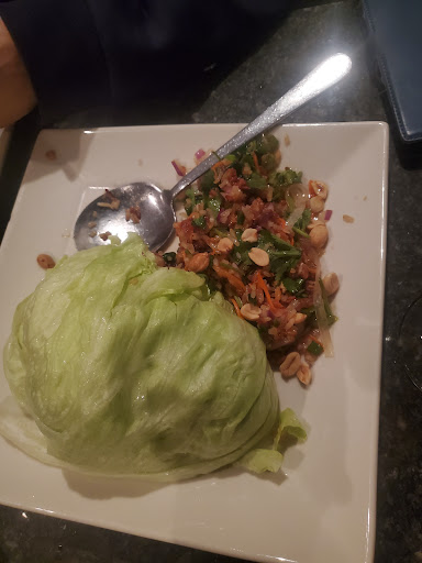 Wife and I visiting the son and did a quick search for a lunch spot near his work and found this place. Kinda tucked away and out of sight but am I glad we found it! Lettuce wrap appetizer is a must and their red sauce in the squirt bottle is addictive. Lunch prices were reasonable, dining area was spacious and very nice. Service was excellent. Wish I had one in my home town :(