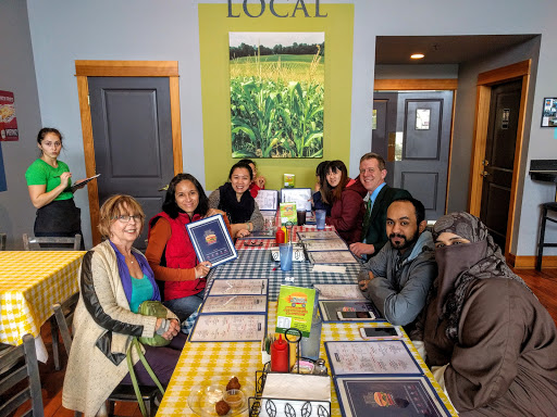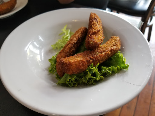 Friendly service. Pretty much everything housemade and vegan options available! Service is a bit slow, but if you order some of the fantastic fried pickles or a basket of sweet potato fries, you wont miss d the wait. Atmosphere is casual, but they were accommodating to our large group with shifting size.