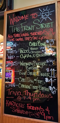Front Street is a great local bar and grill with a delicious menu, comfortable and relaxed atmosphere with staff that give you that welcome home type of experience. The modest exterior hides a true gem of American comfort foods that go beyond the greasy flat food served as an afterthought in other bars to offer a full menu for lunch and dinner. There are daily specials and the occasional off menu cook speciality that will leave your stomach full and your taste buds happy.