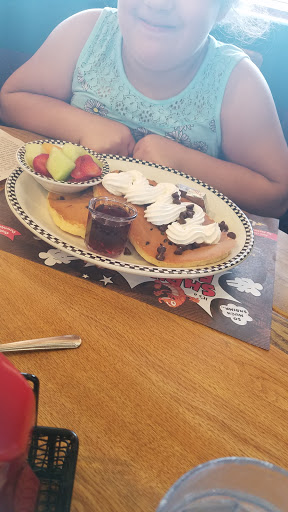Horrible experience all together. I wouldnt ever go back to any of the locations after this experience. My gf ordered the volcano ended up with hair in her scrambled eggs, I ordered the grizz the hashbrowns were burned, the ham steak, sausage and bacon were all cold. The children had the mini volcano which was fine however the cheeseburger basket that showed up was completely wrong and took 40 minutes to replace then my pancakes showed up 5 minutes after that and tasted like grilled onions. The cooks were complianing about the wait staff and swearing in spanish about them while the wait staff was blaming the cooks. The manager did finally give us $10 off the $45 order today after I refused a $10 future visit coupon as we dont live in this town and she said it wouldnt work at another location, while making excuses for the staff. It was a completely unprofessional experience all together.