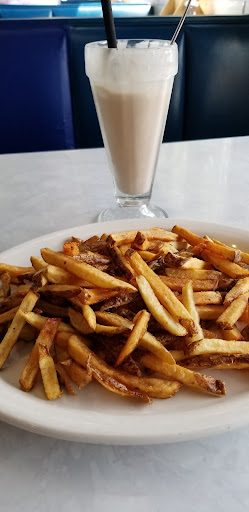 Normally I dont write reviews unless it is really good or really bad. For the Blue Moon the service was really great with an old 50S theme ... but the food was just subpar. My wife and I split a blue moon burger, fish and chips, and a piece of pie (we often share meals to taste the food at new places we try). The burger was the highlight ... the fish and the fries that came with the burger and fish and chips were greasy as if they were cooked in old oil. The cole slaw was old with a strong vinigar taste... my wife warned me just because of the color of the dish and translucency of the cabbage hut I has to try it anyway. The piece of lemon meringue pie was tasteless as if it had been frozen or old. Normally we dont do desert but my wife wanted some pie ... we almost ate at SherryS just for this. Instead we had a piece of lemon meringue that was either frozen at some point or just plain old (afterwards we had to stop elsewhere just to get another piece of pie to just get the taste out of our mouths). Sorry for the review ... we may just been there on the wrong night for food ... as it is obvious this place has had a good history.