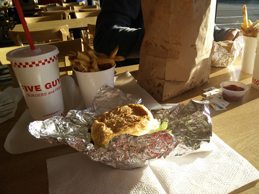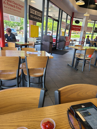 Update (03/30/2017): I dont know why I keep coming to this place. I went back to this location two days ago and it took them 19 minutes (yes, I timed it) to get my order out. The placed was dirty as usually with trash bins being overfilled and the floor being littered with peanut shells and fries. The restroom had a used teaspoon thing with black ooze dripping from it (drug usage Im assuming?). God, this place is really terrible and I WOULD NOT RECOMMEND ANYBODY VISITING HERE. GO TO 185TH FIVE GUYS INSTEAD! Ive been to this location about five or six times so far in the past few months. And I have to sadly give this place a 1-star. Why? Their food does not meet the standards of a Five Guys restaurant. The hamburger that I usually get doesnt match my order and their fries are so freaking crunchy. The fries at this location are extremely hard and not worthy to be called a Five Guys standard fries. They do not melt in my mouth and oh, they barely give you any extra fries in your bag! Their crew members acts unprofessional. When I went to this place one time, I saw people inside of the kitchen laughing and screaming out a persons order number because they wouldnt come up. The place is always dirty. The floor are filled with a thousand peanut shells and the restroom always has a freaking orange cone every time I enter. Overall, I dont really like this Five Guys location. Ive been to three different locations in Oregon and this one is probably the worst one.