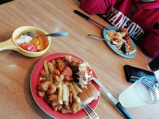 This restaurant had been one of our favorites restaurants but today the buffet on Hall blvd was just so dirty. There was debris on all the carpet in the whole dining area. There was black mold on all 3 icee faucets where it comes out. There is mold and black and grey mold like around the plastic where the ice cubes comes out. The area where the milk is dirty. The restrooms also very dirty, and 2 out of 3 toilets where dirty inside and outside. The tray where the napkins are, it was just cover in dust... I told the 2 ladies about the mold in the icee machine and they just couldnt see it until I showed them.. they got mad at me and didnt even say a single word to us after telling them about the icee... my little ones and I went to use the restroom and when we came back the lady cleaned our table and even take the 2 little stuffed animals from the table to the from and left them not at the register but on the side where they stack the dirty dishes... when we came out I told her why she did it if he hadnt finish yet, but since we had our stuff removed from the table, we just left...