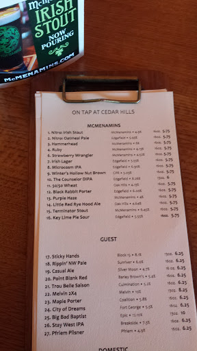 Im not an alcohol-drinker -in fact I despise the very existence of all forms of alcohol, as well as most people who consume the crap. That being said, pardon the profanity, but to paraphrase Michael Jordan...it must "shock the **** (snuffalopogus) out of the readers who are analyzing my review to learn that I would EVER frequent such as place as McMenamins. Well, the only reason why I frequented this place recently is because a friend of mine (hes a young geezer who does drink alcohol) dragged me to this place. I couldnt refuse his offer, because if I had, he wouldve ceased to be my friend...and he also was paying for my meal. The McMenamins pub in Cedar Hills is located immediately to the north of Winco. I was shocked that I had NEVER seen this pub until recently as I have walked to Winco and all around CedarHills Crossing many times; but McMenamins is somewhat difficult to see amidst all the cars in the parking lots. The inside of this pub -although it is frequented by "alcohol"-guzzlers- has a very nice vibe that even a "Mormon boy" like me does not find "uncomfortable" or "detestable" whatsoever. The interior is fairly spacious -more so than the exterior would suggest- and is very ornately designed with many hanging plants on rafters below the ceiling. I gather that the selection of "spirits" (or is it "demons?")of this restaurant is voluptuous and diverse from what I could ascertain by looking at the menu -though THIS Mormon boy dont much care for that crap. The food menu isnt nearly as voluptous as the "spirits" menu...but is (barely) acceptable in terms of the number of menu items and variety: There is a couple handfuls of different types of sandwiches, a decent selection of salads, as well as other meals to select from. My "Aztec salad" was somewhat spartan and too simple in terms of amount of ingredients and full-bodies taste but it was still"okay," nonetheless. My friend ordered a "fish and chips" with cole slaw and his meal looked like it was of much higher quality than mine. The burgers that I saw waitresses carrying to customers also looked tantalizing and of high quality. The sauces included on the table (dijon mustard and McMenamins own brand of ketchup) were the best of any brand that I have ever sampled in my life. Even though Im a "bona fide" legitimate alcohol-hater, I definitely ironically would likely give McMenamins another try -given the "vibe" of this pub as well as other factors- and would not mind frequenting this place at least one more time...