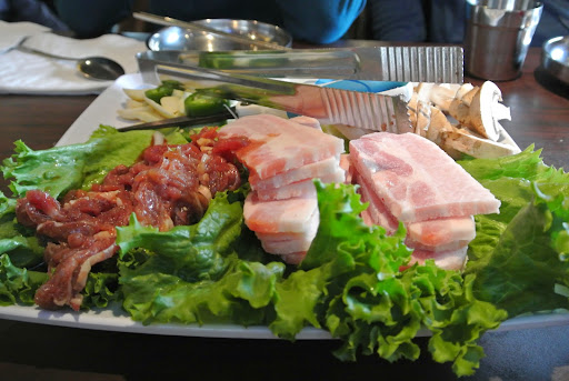 Nak Won is a great value. My family of four feasted on banchan, steamed pot stickers (jjin mandu), kimchi jjigae, steamed rice, lettuce chards and ssamjang, and a platter of meat — pork belly (samgyeopsal), beef (bulgogi), and beef franken ribs (galbi). We ate so much we chose to skip dinner altogether. All for around $60. Rule #1 — Arrive early. The place is popular and, predictably, packed. There’s a three-hour window for lunch (11:30-2:30) and a three-and-a-half hour window for dinner (5:00-8:30), except for Fridays and Saturdays, when the restaurant closes at 8 p.m. Wander in during the last half hour at your own risk. In that last half hour, the kitchen is backed up with orders and the menu options narrow. Don’t blame the restaurant. Blame yourself for arriving late. Rule #2 — Play the field. Explore the menu and order a dish or two outside your comfort zone. You will be rewarded. Ordered beef bulgogi last time? Try the soondubu jjigae, a soft tofu soup with meat and vegetables served boiling hot. Our family eyed dishes delivered to surrounding tables and made notes for our next visit. Rule #3 — Bring friends. Korean BBQ and comfort food play well to a communal table and Nak Won’s atmosphere is no exception. You’ll quickly find there’s plenty to share with your guests, whether you ladle soup, slide along small bowls of banchan, or serve sizzling hot meat from your table grill. Quibble #1 — The steamed pot stickers was the only dish to disappoint. I knew I should have ordered a green onion pancake. Though, I recovered when I ordered a large bottle of Hite beer to share with my wife as we deliriously chewed on BBQ meats. Quibble #2 — Banchan is free and refillable, although I didn’t care for either the spicy bean sprouts or the fish cake. The potato salad is authentic to Asian cultures (I ate a similar recipe in Japan), but might come across as relatively flavorless to palates tuned to spicier variations. Quibble #3 — Finally, some more adventurous Korean BBQ meat choices aren’t on the menu but those listed at Nak Won are solid.