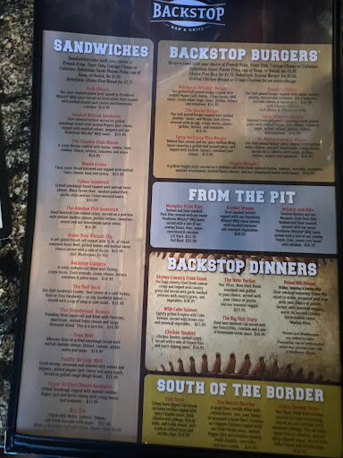 Second time we have eaten at Backstop in the past three months was on Fathers Day, this past Sunday. Great place! Excellent service, delicious food and ambiance superb! Glad to have this happy place to stop in for a great meal! Keep up the good work, and you will continue to have a lot of customers daily!