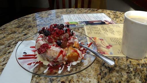 Enjoyable staff, even in the early hours of the day. Panini sandwiches are pretty tasty. I recommend the Smoked Chicken panini. As far as vegetarian diets are concerned, the have a variety of baked goods and a grilled cheese panini with pesto. A bit of spice in that cheese. Sit near the windows if you can. And for the kids, send them on a hunt for three plastic army men in the shop. They can be found on the top of the crown moulding of the pillar on the back wall by the window seating.