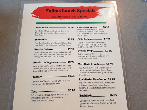 We have been going to Fajitas for years and it has always been our favorite Mexican restaurant in the area. We went there last night (1/24/14) and were very disappointed. The portions were a lot smaller and the sauce was not the same. The service was the slowest we had ever had. It was the same staff in the front but the menu has changed, maybe the cook, and/or owners. We were very disappointed. We will now have to find a new favorite....
