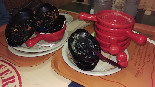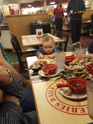 Very nice salad bar. That is the only nice thing I can say about this dining experience. After getting our salad and paying for it. It took 13 minutes to seat us. REALLY! Soups were barely warm and way too sweet (tomato bisque). The breads were warm but can I have a plane dinner roll please. We waited and waited for the pasta to be put out. It took forever to get dirty dishes taken away! It was really really really NOISY. Little ones running free. All in all after paying $50+ for lunch we were full but not satisfied.